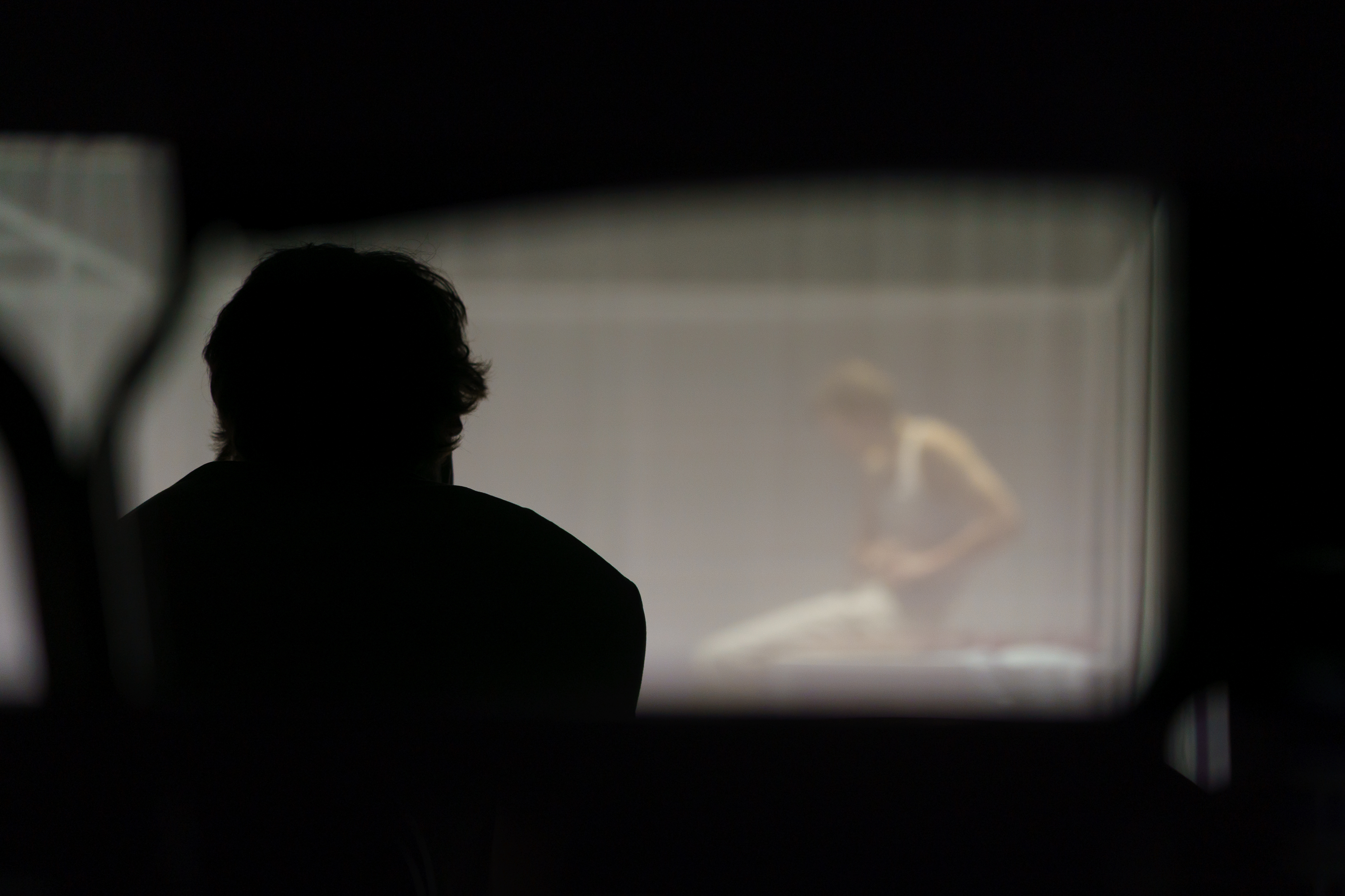 This project is a stage set designed for the graduation show PLEINVREES #1 of Dutch actor Mendel van der Ploeg. The stage set consist of a white steel frame on a stage in a large body of water with the audience all around. In the floor of the stage there are hidden cabinets for attributes and white translucent fabric with which the walls can be closed off.